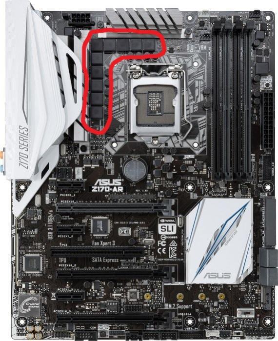Du musst einfach nur die rechteckigen, schwarz-grauen, "Würfel" zählen. Beim ASUS Z170-A sind das z.B. 10 Phasen