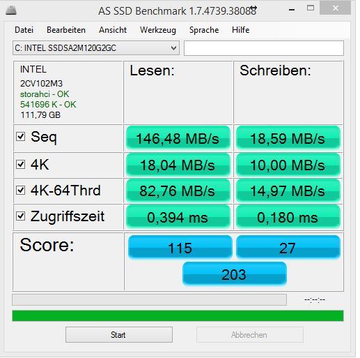 Ich bin leider schon ein wenig aus der Materie raus, habe hier mal nen AS SSD Bench (welcher mir schon spanisch vorkommt) und CrystalDiskInfo angehängt. Weiß ehrlich gesagt nicht mal, ob überhaupt die richtigen Treiber für den Controller installiert sind oder was ich falsch gemacht habe.