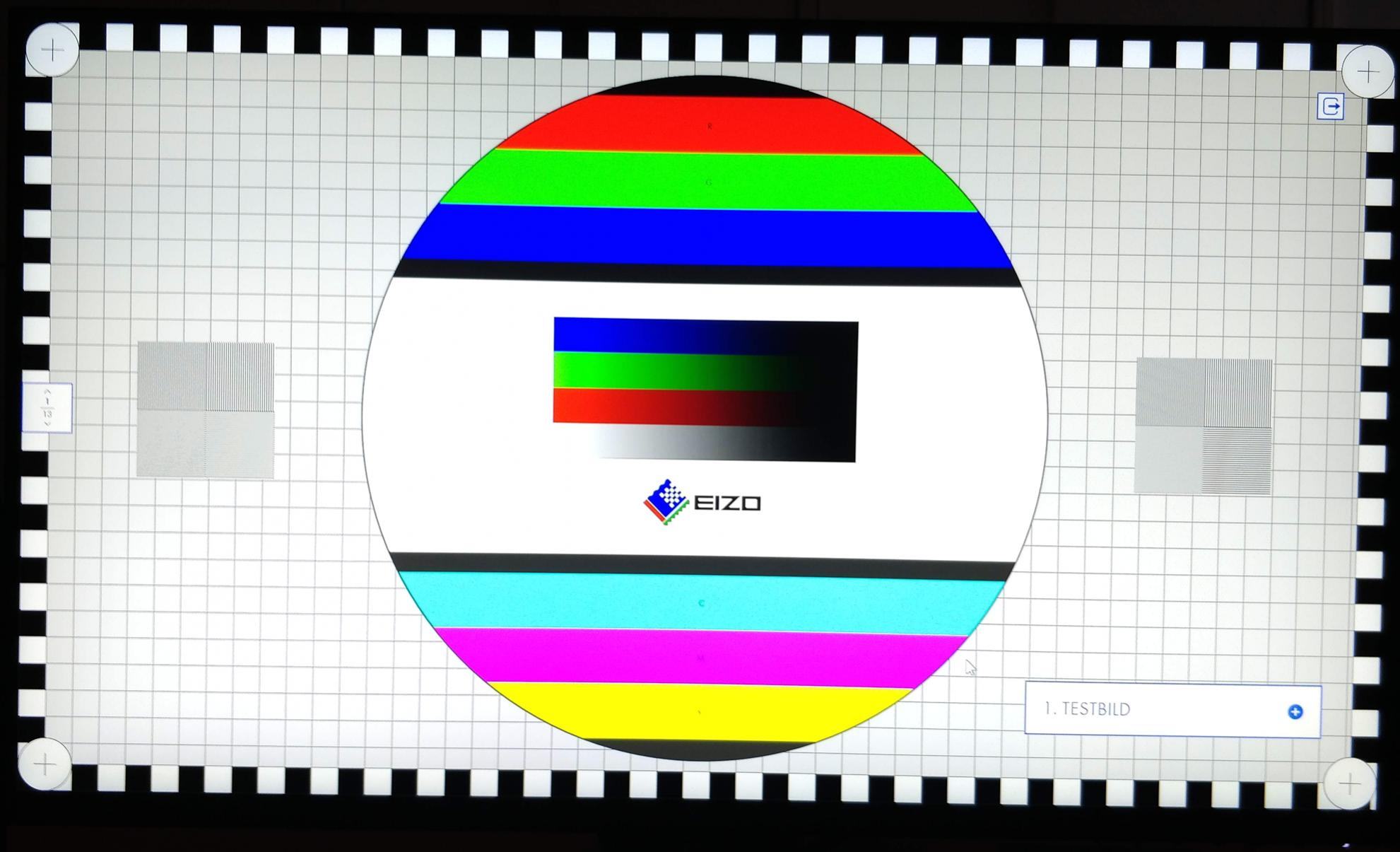 Hierzu noch ein ergänzendes Foto vom Eizo-Testbild. ist aufjedenfall schwer das realitätsgetreu aufzunehmen. Aber ich denke das man das hier ganz gut erkennen kann das der Monitor mit "Bending" auch kein Problem hat.