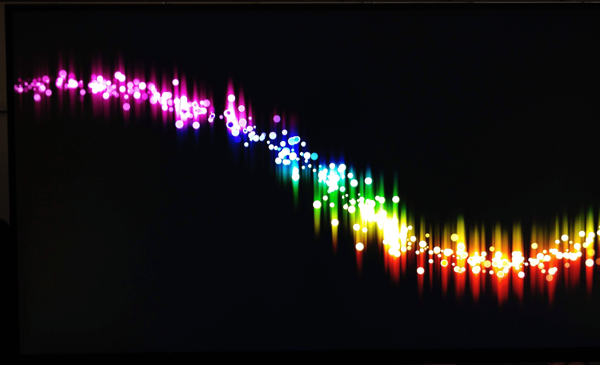 Was man sehr wohl erkennt ist das die Ausleuchtung nicht besonders homogen ist und zu den Rändern abfällt. Nach oben hin erkennt man schon ganz leichte Blinkwinkelinstabilität.