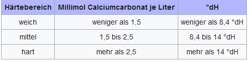 Wir haben ~4 ° deutscher Härrrte - das ist ziemlich gut 8-)