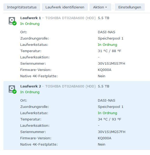 so die Toshiba mit dem "fehler" läuft nach Formatierung wieder richtig Top, und schnell. Da das DS218J noch mit der anderen Toshiba die Daten zum neuen NAS sichert werde ich danach mal das NAS testen, habe zwei WD 2TB mit CMR hier, die sollten dann zum Test ja gehen?