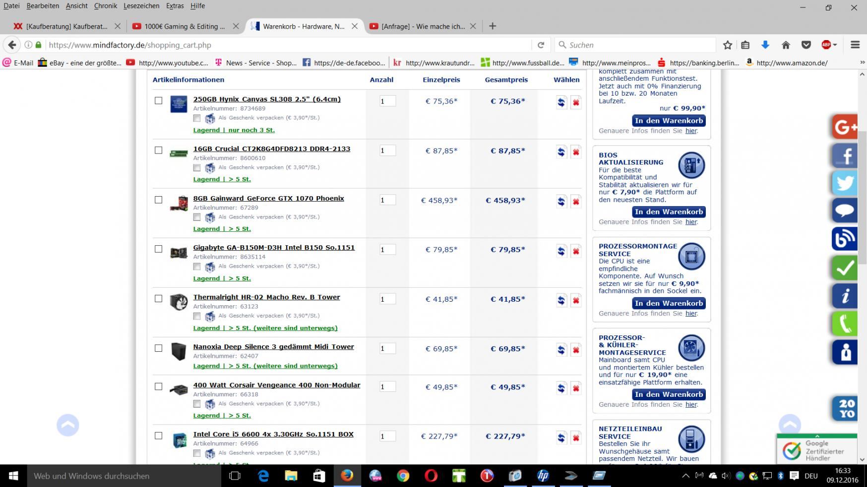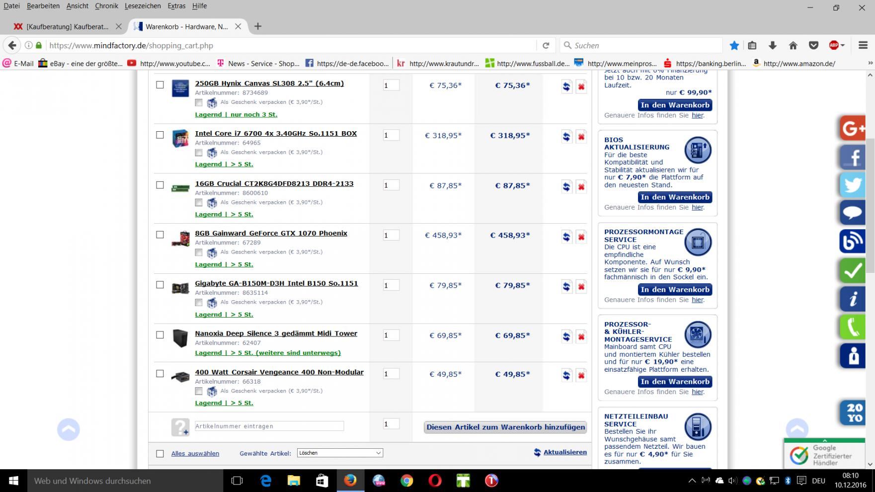 Gut dann stelle ich das nachher mal bei Mindfactory zsm wie viel das alles kostet