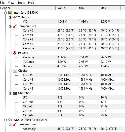 Die CPU ist erstmal auf 4x4000 max fest gesetzt, wenn sie nichts zu tun hat steht da 1600.