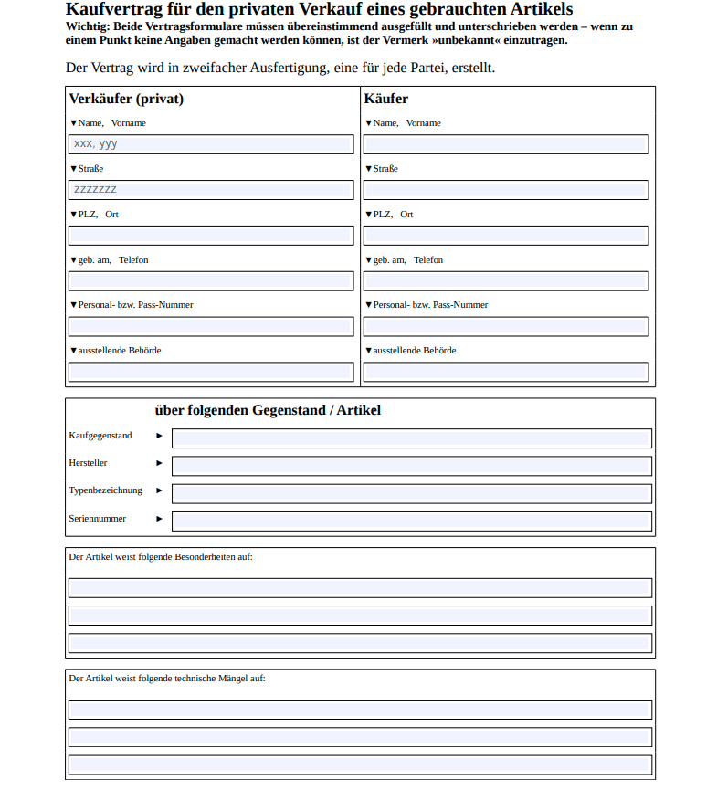 Jetzt hat er mir aber gesagt ob es für mich ok ist einen Kaufvertrag zu unterschreiben. Er hat mir das Formular geschickt was er ausgedruckt mitbringen wird und wir dann gemeinsam ausfüllen können. (Bild unten)