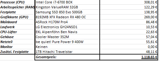 - netzteil hätte ich ein anderes gewählt, aber das aus der zusammenstellung ist ok.
