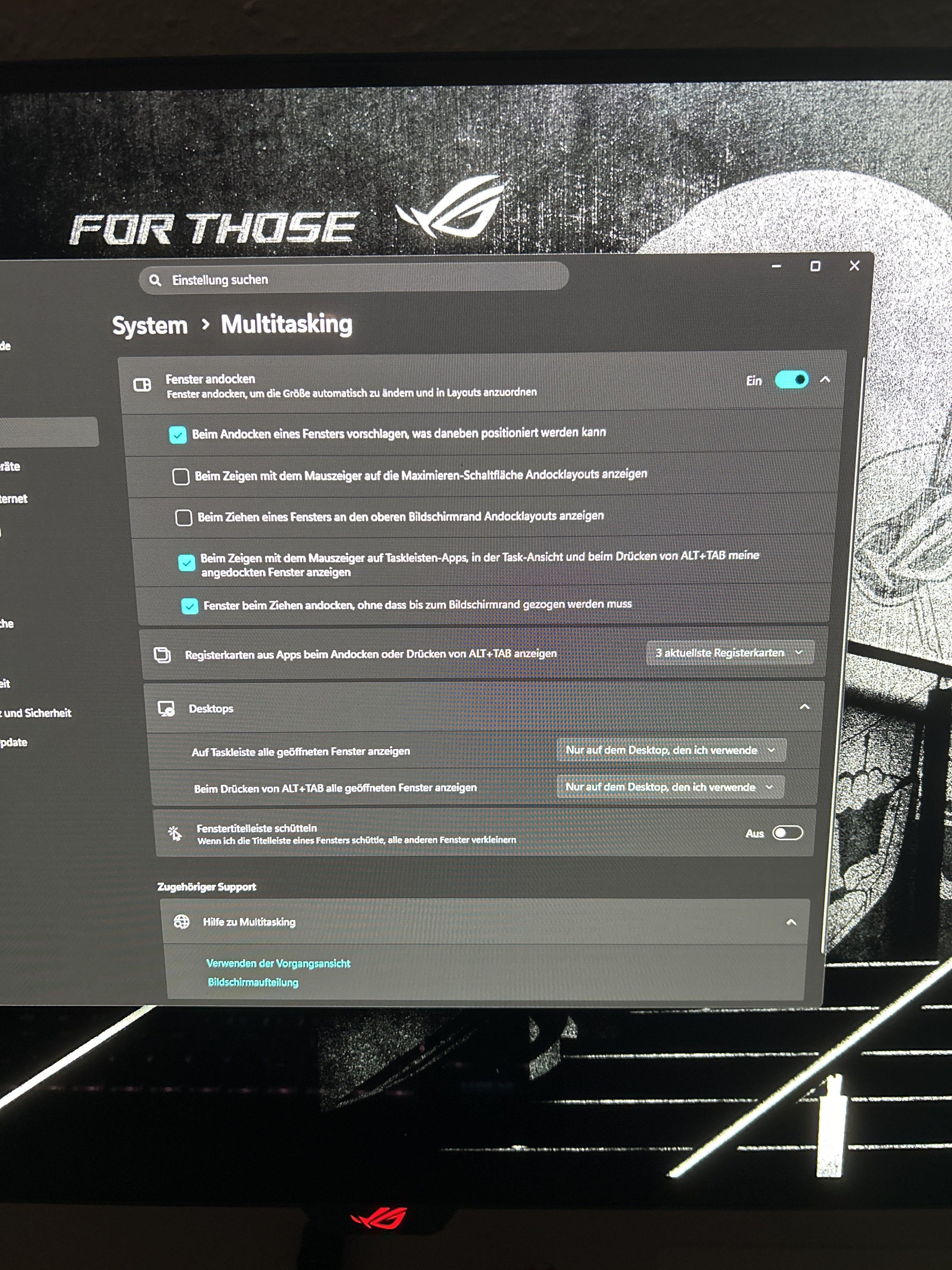 Hat eigentlich nichts mit der Andockfunktion von Windows zu tun, die habe ich nämlich deaktiviert.