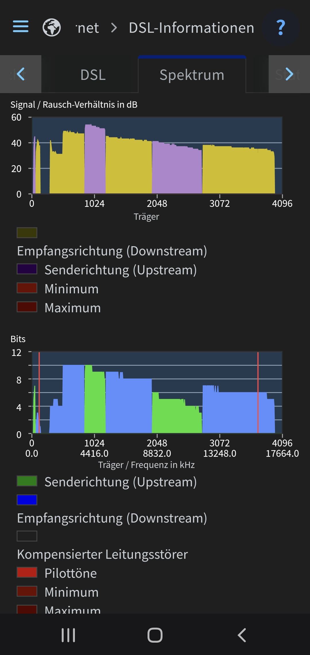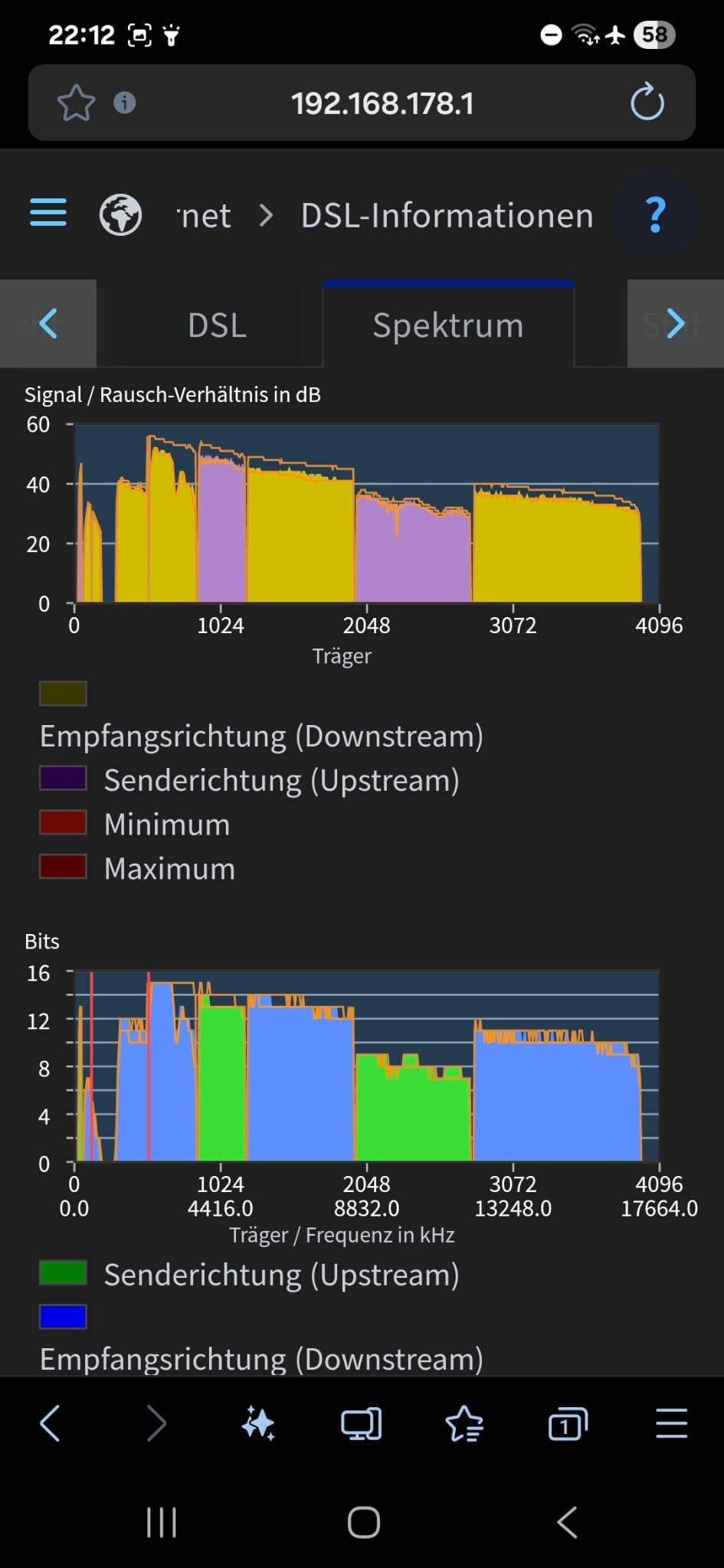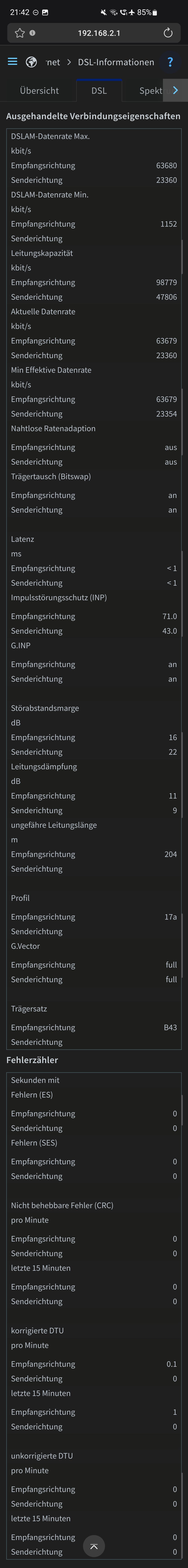 Nach dem Resync waren die Werte wieder fast auf normal-niveau, aber diese sind dann wieder langsam gefallen bis ich Abends bei einem SNR von 13 und in der Früh von 11 war.