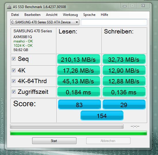 Benchmark lässt jetzt auch nichts mehr sooo unübliches entdecken, wobei das sequentielle Schreiben früher bei ca. 170 lag.