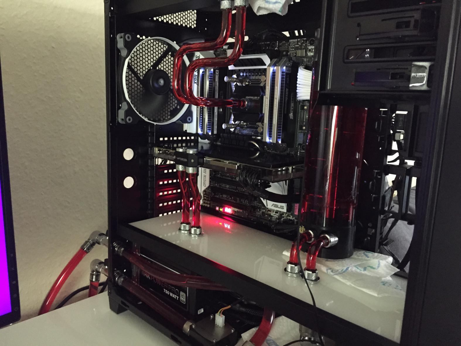 das Problem ist halt ich habe den Rechner erst vor kurzem zusammen gebaubt und der steht halt im Moment offen also ohne Gehäusewände (siehe bild), fehlt halt noch das Farbwerk was morgen ankommen sollte und Weiß gesleevte PCIe Kabel.