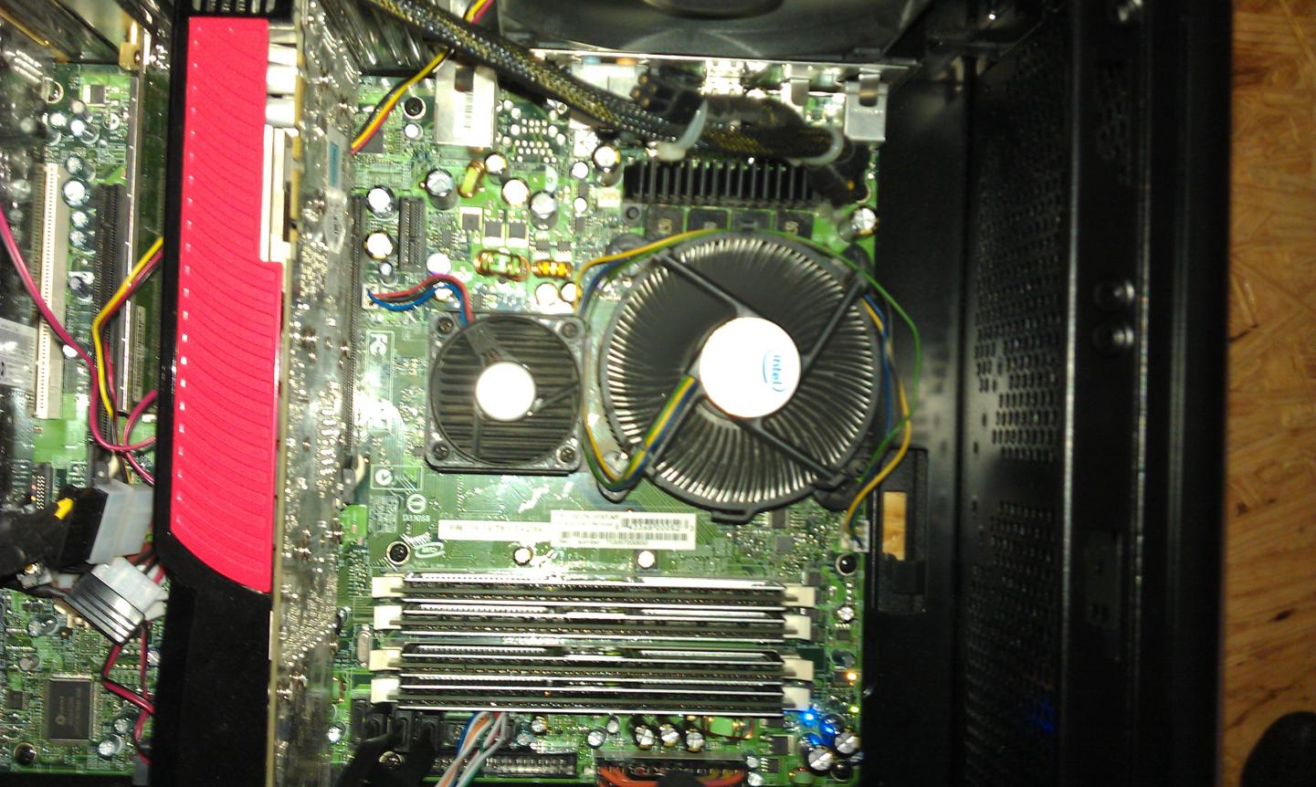 Installiert ist ein Core 2 Duo 775 2,6ghz mit OC auf 3 ghz -->stock Intel Lüfter ist drauf.