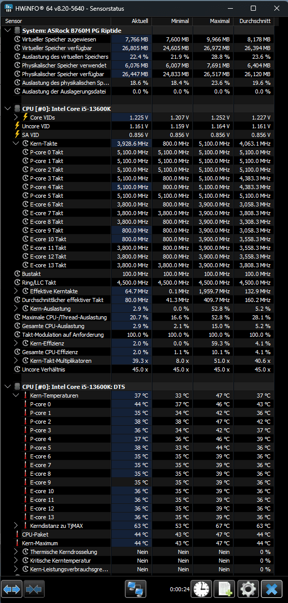 Temperaturen im Idle Modus: