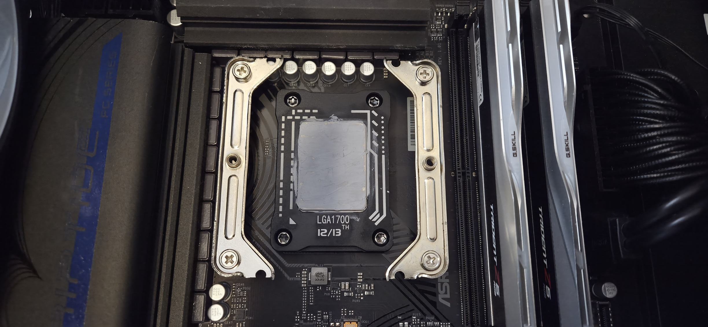 Nach der Erstmontage des Kühlers habe ich diesen nochmals entfernt um ein Andruckbild auf der CPU zu kontrollieren.