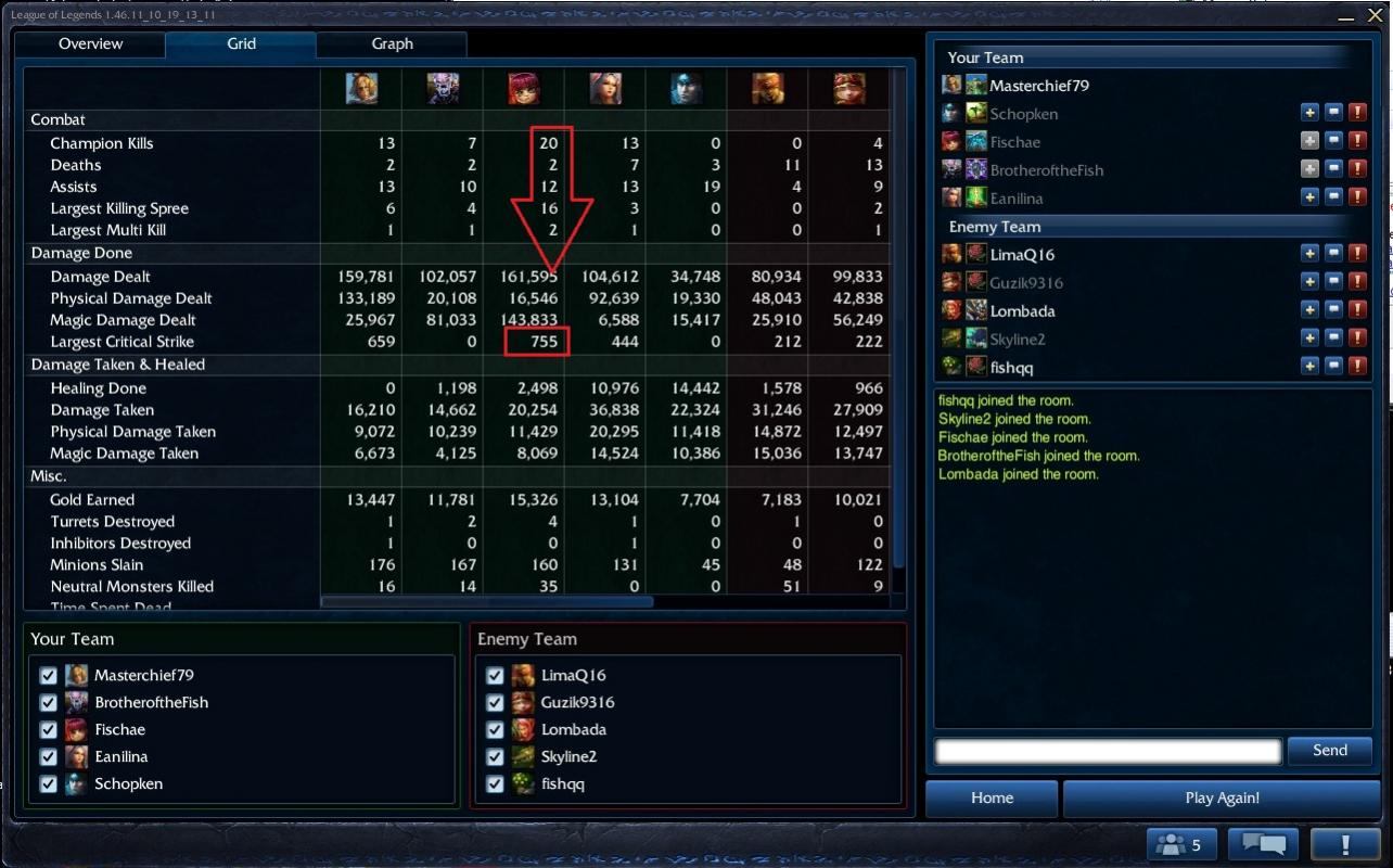 Und was passiert? Auf einmal ist Graves ein OP Char (nochmal: unten waren Akali&GP, die OPs schlechthin) und ich bin 'useless' weil ich immer nur farme (eh klar, die sind nämlich danach auf meine Lane und haben die unnötigerweise gepusht)...ich mein 1 Champ ~ 12 Minions wert, ergo hatte der gegnerische Grave allein von den Kills her Gold im Wert von 60 Minions@10:00 ...wie soll ich das so einfach aufholen?