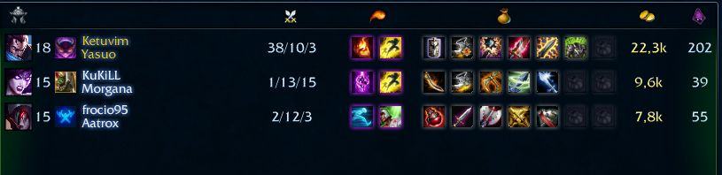 Ja klar, gefarmt ist der Champ ein Killer, aber in der Laning-Phase ist er leicht zu kontern, mit den richtigen Champs, z. Bsp. Riven, Akali oder Pantheon ... ja selbst der gute, alte Olaf nach Level ~4 ist für Yasuo ein schwieriges match-up