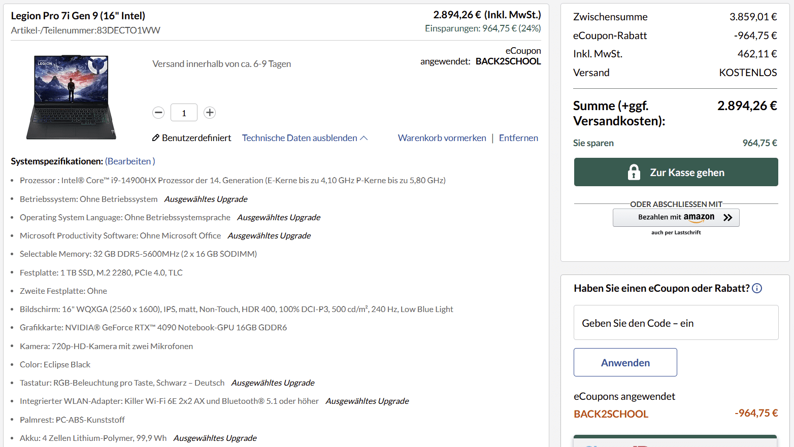 Nach langen hin und her überlegen wurde es dann ein Laptop, da der neue PC min 2,6k kostet.