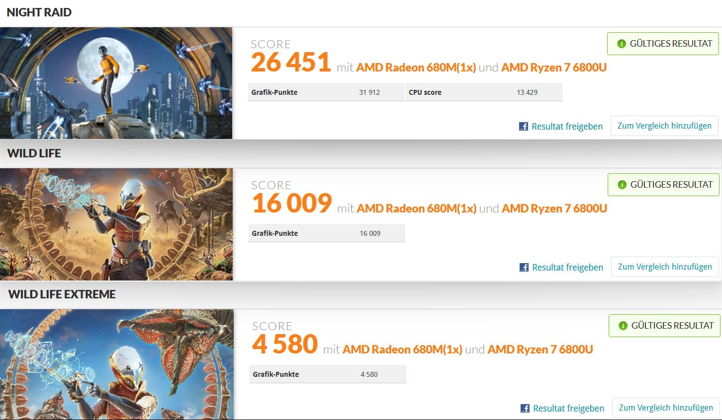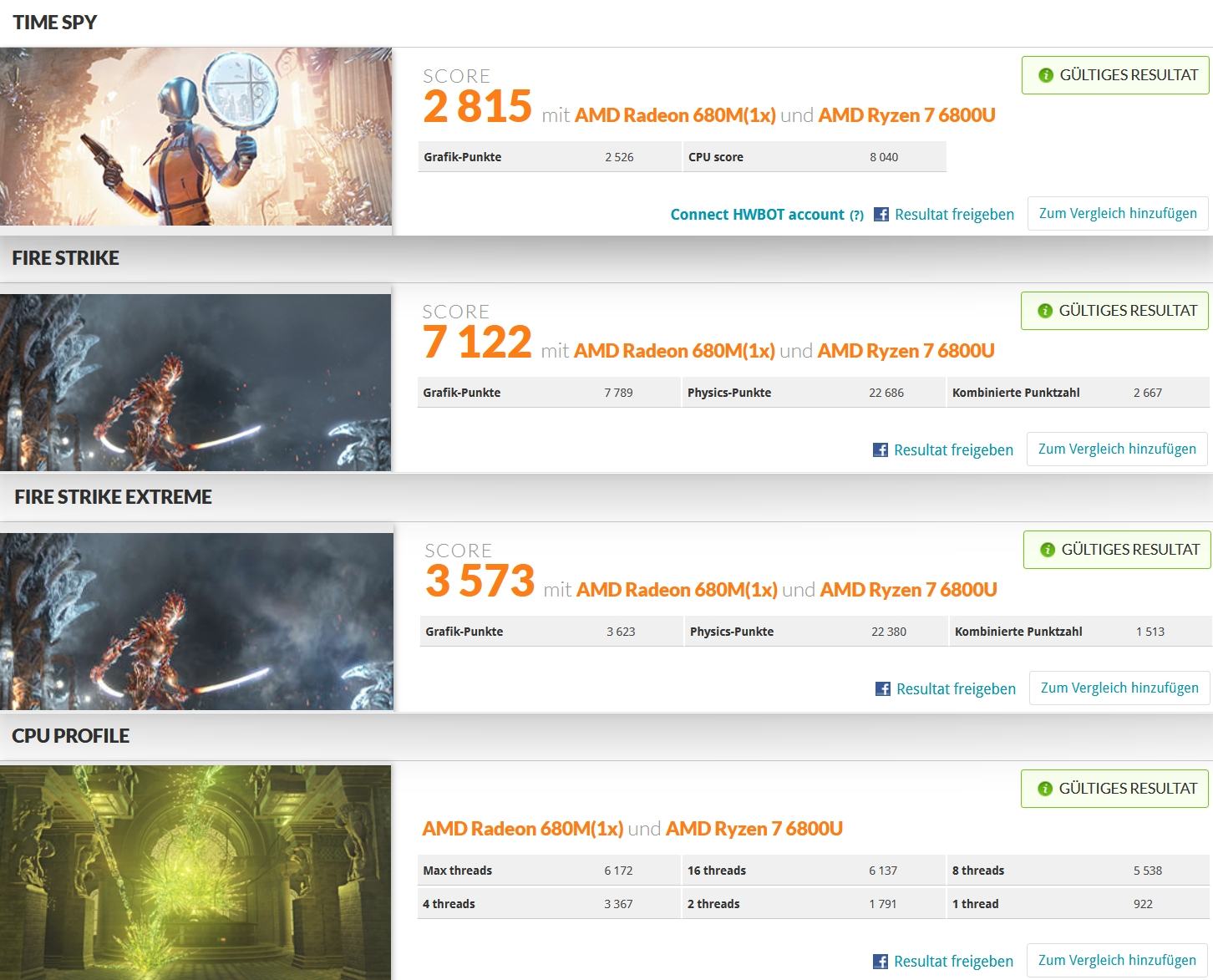 edit, nochmals einige 3D Mark Benchmarks. Von dem, was ich bislang gesehen habe, schlägt sich der Nachfolger, der 7735U, eher einen Tick schlechter als der 6800U.