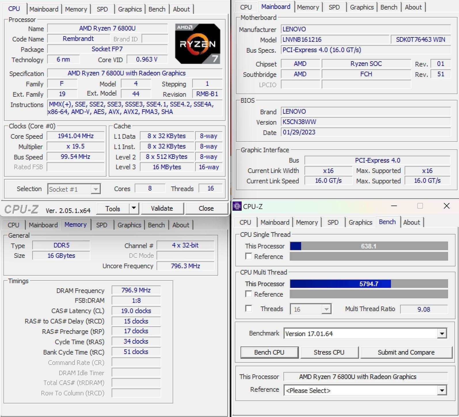 Lange habe ich überlegt, ob ich den neuen Nachfolger, sprich Gen 8, vom Yoga 7 kaufe (Lenovo Link). Allerdings hätte mich die Kiste dann rund 210€ mehr gekostet, wohlgemerkt für's fast gleiche Notebook. Gleiches OLED-Display, gleich großer LPDDR5-Speicher, usw., nur die CPU wäre neuer und zwar der Ryzen-7 7735U statt der 6800U. Vergleicht man die Specs der beiden CPUs, sind sie nahezu identisch. Der 7735U wird mit einem (sage und schreibe) +50 MHz höheren Single-Boost angegeben, wobei mein 6800U auch die 4.750 MHz macht, aber dazu später mehr.