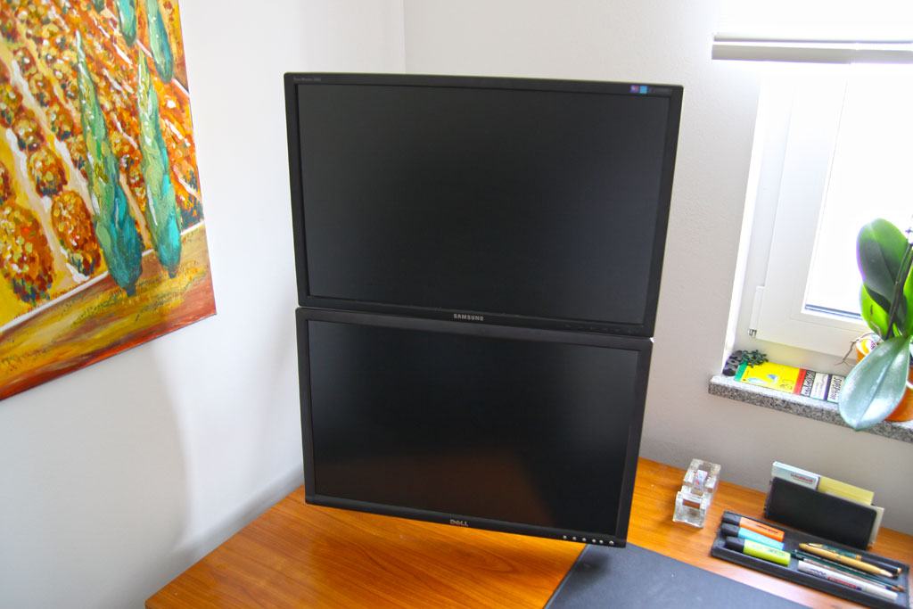 (Befestigung der Monitorarme direkt am zentralen Rohr)