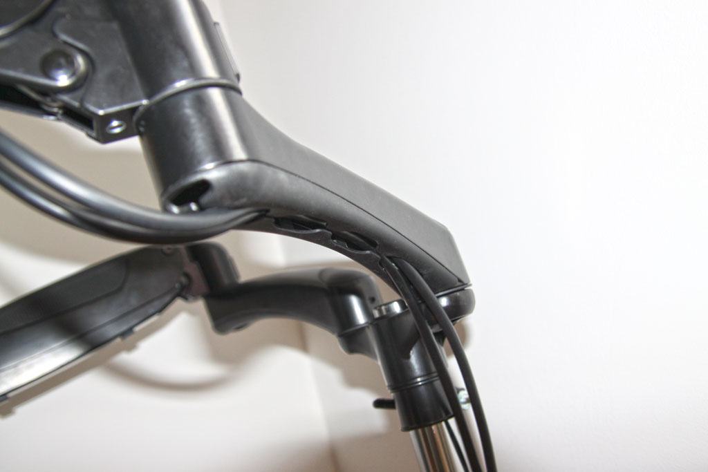 An den Monitorarmen befindet sich eine gute Kabelführung. Lediglich am zentralen Rohr ist die "Kabelführung" mit nur einer Klemme etwas dürftig. Hier hätte eine wertigere Lösung mehr Sinn gemacht.