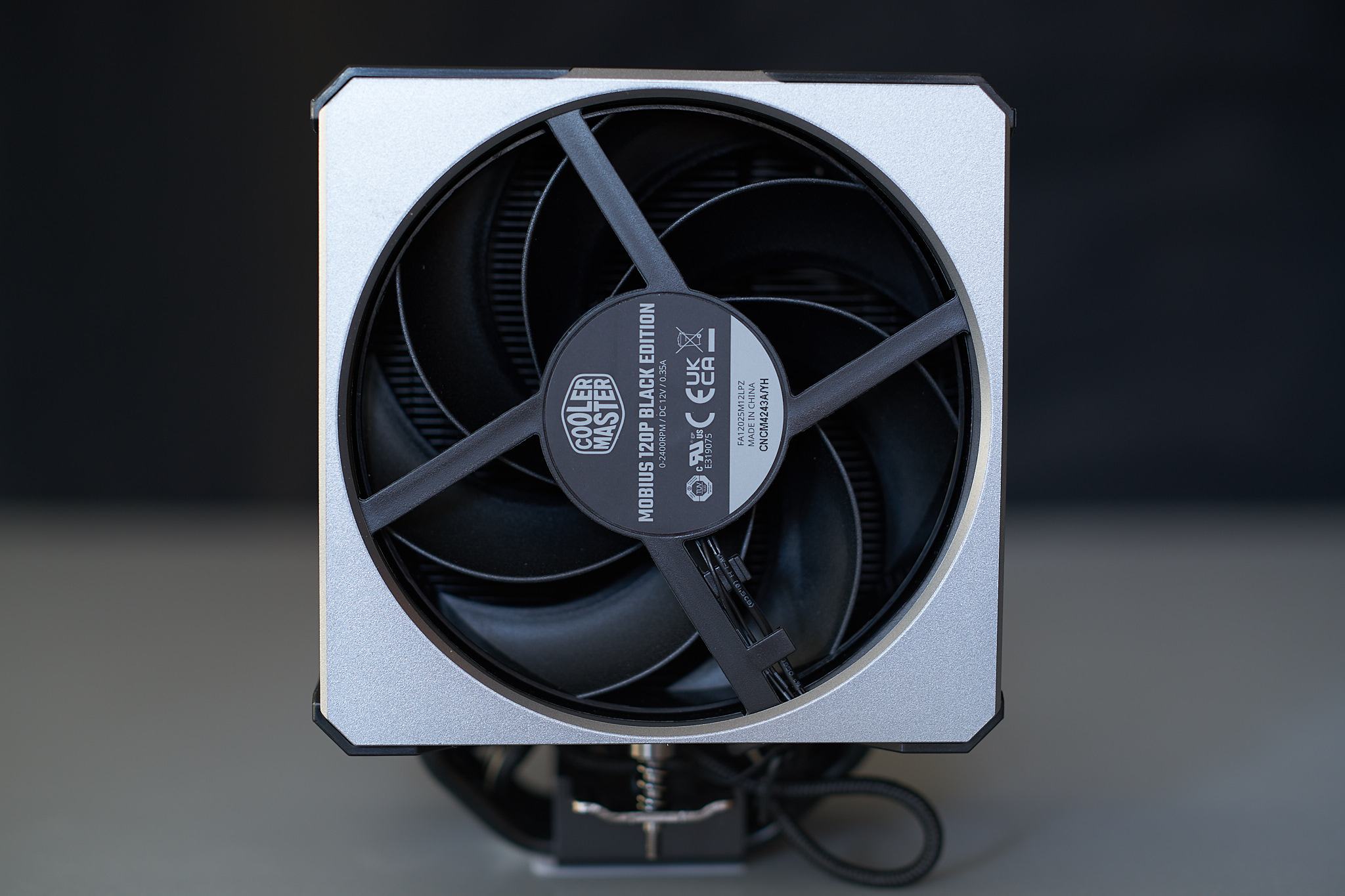 Da Cooler Master die Mobius 120P Lüfter, mit abgesehen von der LED-Beleuchtung identischen Spezifikationen, auch als ARGB-Variante anbietet, habe ich nach Abschluss aller Messungen die schwarzen Lüfter durch die beleuchteten Pendants ersetzt, um zu sehen, wie der Kühler als ARGB-Variante wirken könnte. Mit der sonst minimalistischen Optik des Kühlers ergibt sich meiner Meinung nach ein stimmiges Gesamtbild.