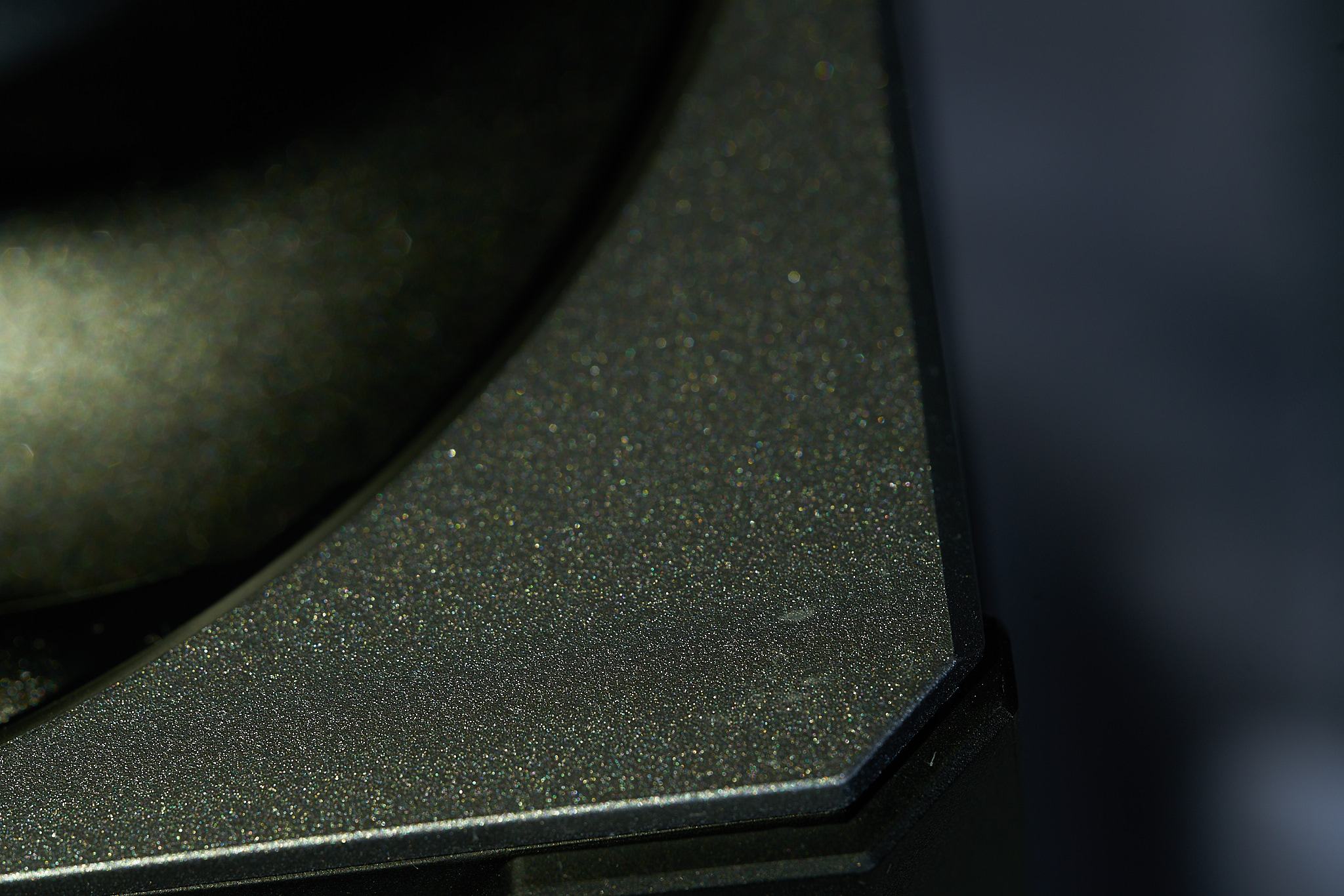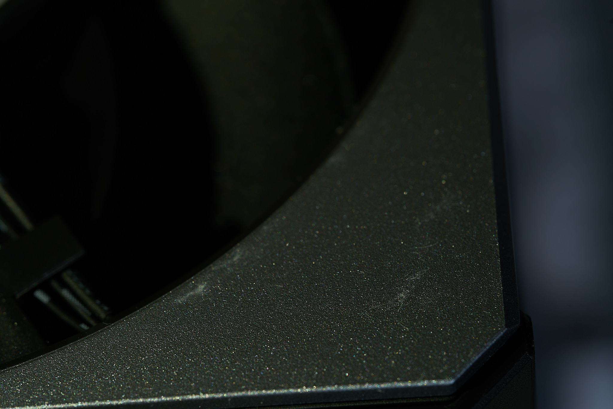 Neben den Flecken auf der Bodenplatte noch Kratzer in den Zierblenden der Lüfter entdeckt, die bereits out of the Box vorhanden waren und nicht durch die Handhabung während des Unboxings entstanden sind. Ich habe ein paar der Stellen mit normaler Beleuchtung und stark seitlicher Beleuchtung fotografiert, die die Schäden hervorhebt und damit deutlich besser sichtbar macht. Je nach Beleuchtung im Gehäuse sind die Makel in der Lackierung der Zierblenden mehr oder weniger stark sichtbar.