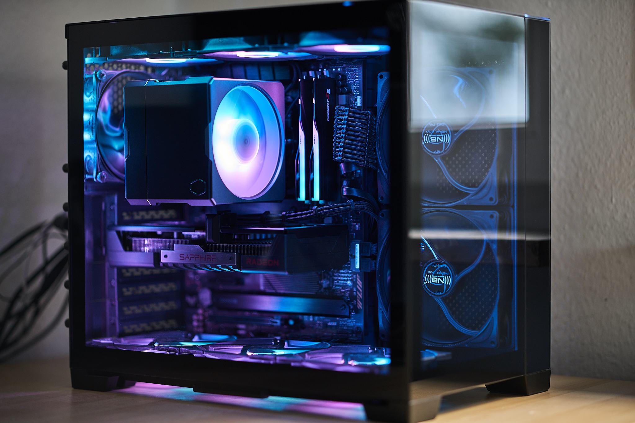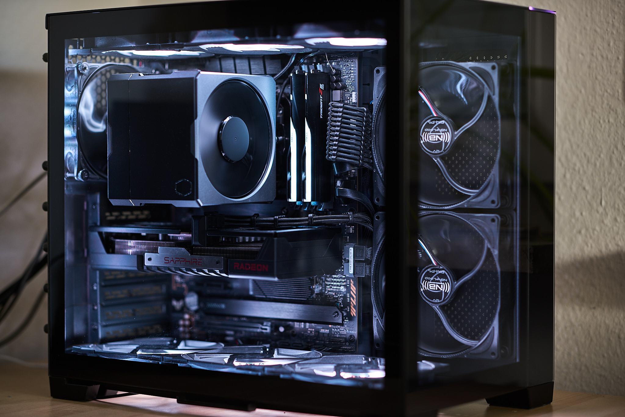 - Lian Li O11D Mini (mit 2x NB eloop B14-PS, 1x NB eloop B12-PS und 6x Endorfy Fluctus 120 ARGB)