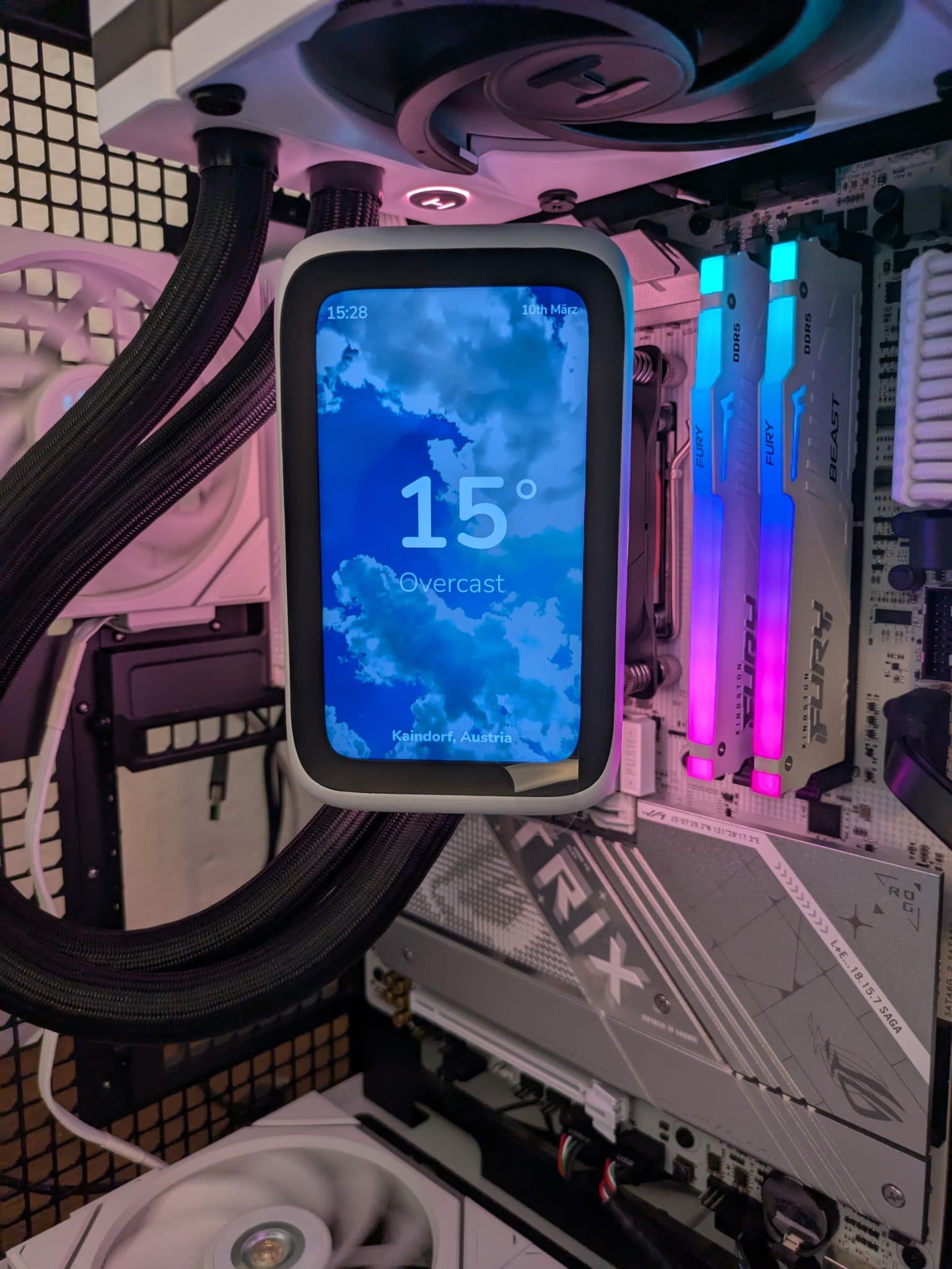 Das beste und zu gleich innovativste an der AIO ist für mich die Verkabelung, im eingebauten zustand ist kein Kabel zu sehen, weder am Display noch am Kühlblock,