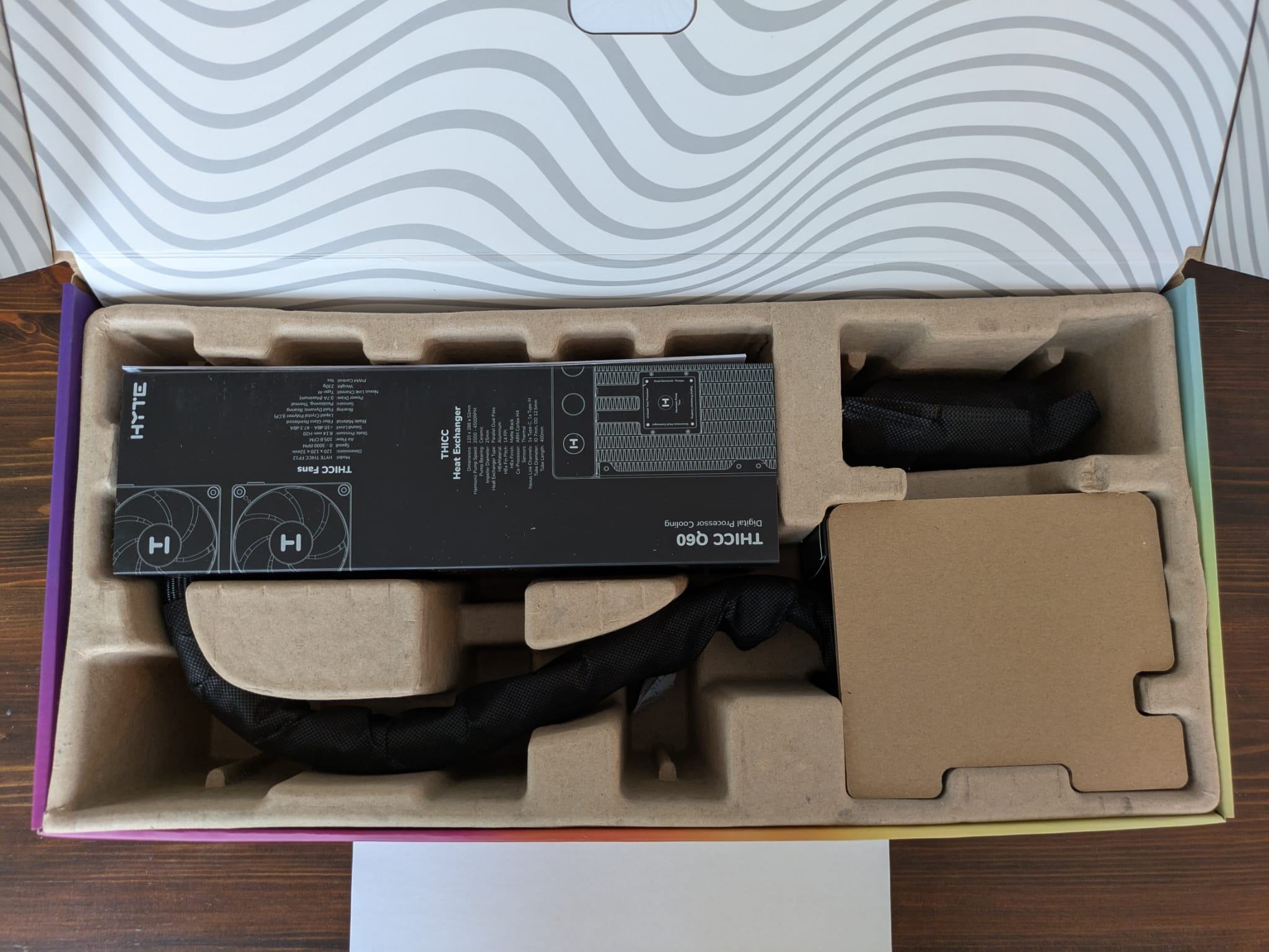 Da ich wie beschrieben schon einige AIO Wasserkühlungen aufgebaut habe, kann ich beim Unboxing der Hyte Q60 ein Riesen Lob aussprechen!