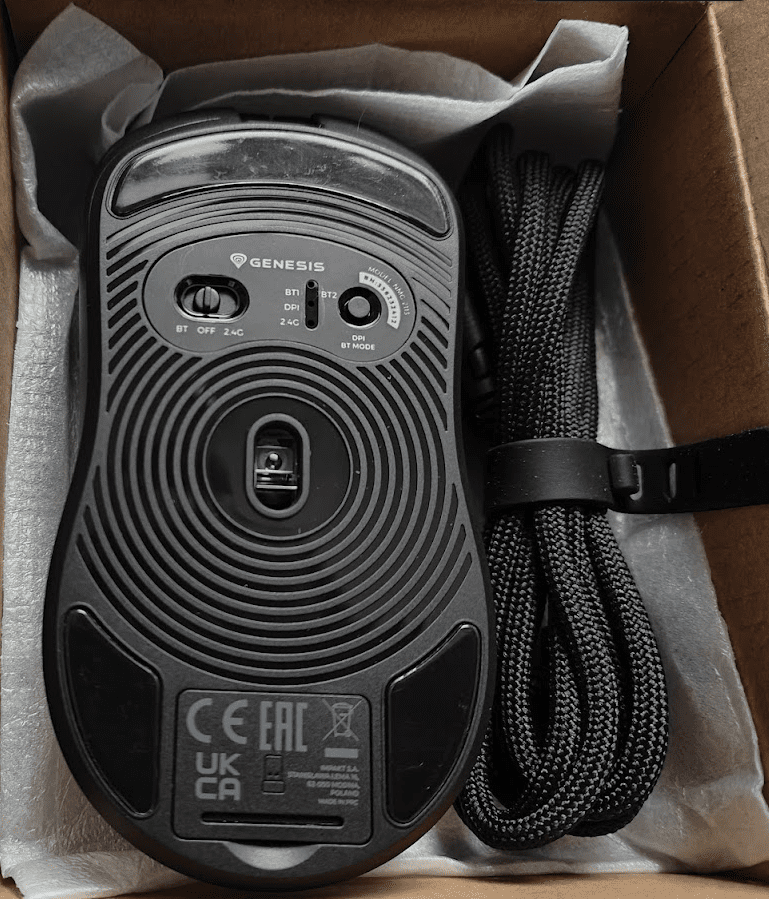 Die Maus hat für meine durchschnittliche Männerhand eine angenehme Form und Größe. Sie ist im Vergleich zu meiner Glorious Series One PRO Wireless etwas kleiner und mit 79 Gramm auch merklich schwerer. Sie fühlt sich aber sehr gut an, die gesamte Haptik der Maus ist wirklich hervorragend und muss sich nicht hinter meiner Glorious verstecken. Das höhere Gewicht macht die Maus ein Stück angenehmer in der Hand, wenn man wie ich vorher eine schwere Maus wie die Logitech G600 mit 133 Gramm genutzt hat.