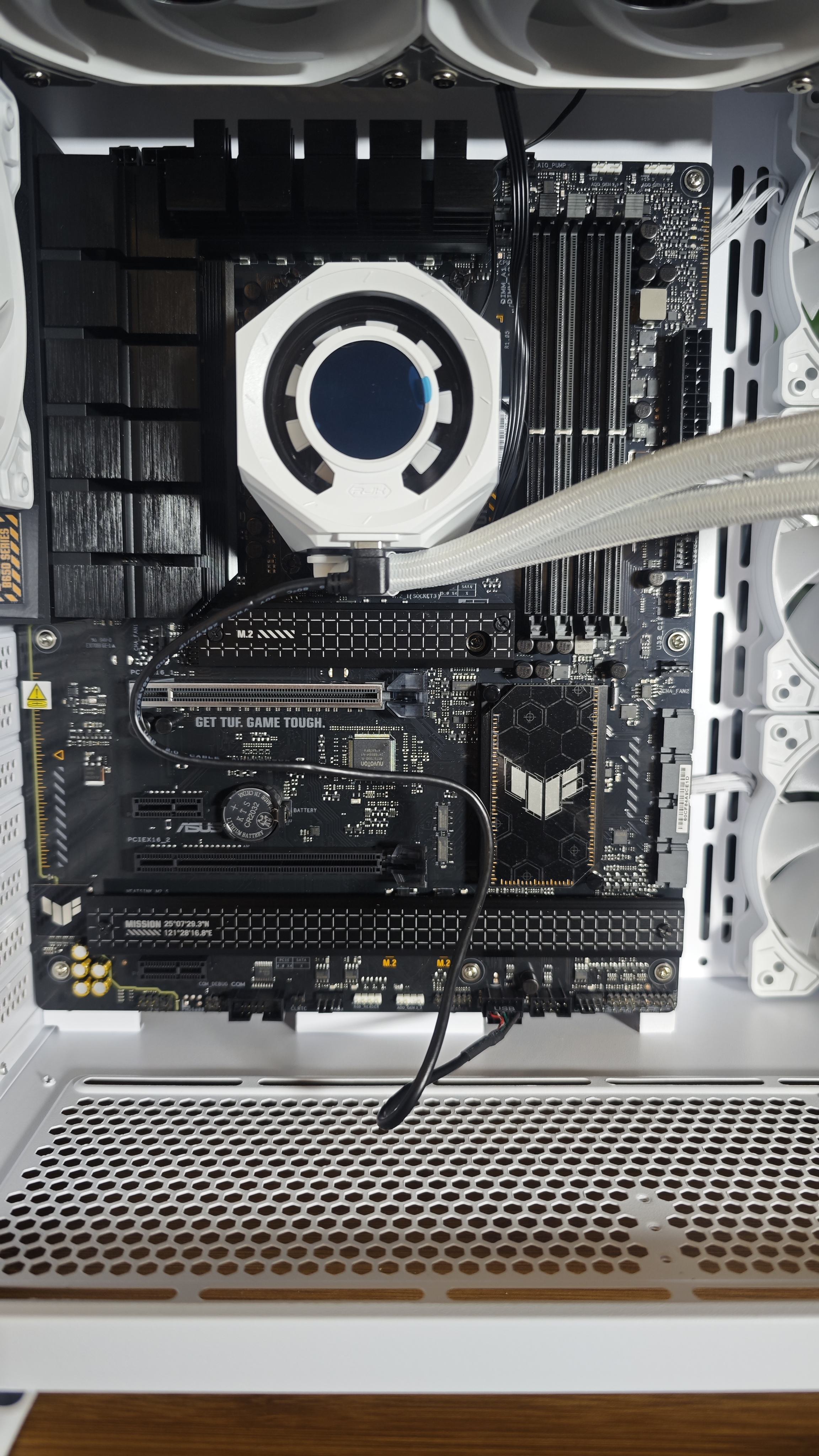 - der erste Eindruck könnte echt gut sein, aber WARUM? Warum verbaut man an einer weißen AiO für die Pumpe schwarze Kabel?
