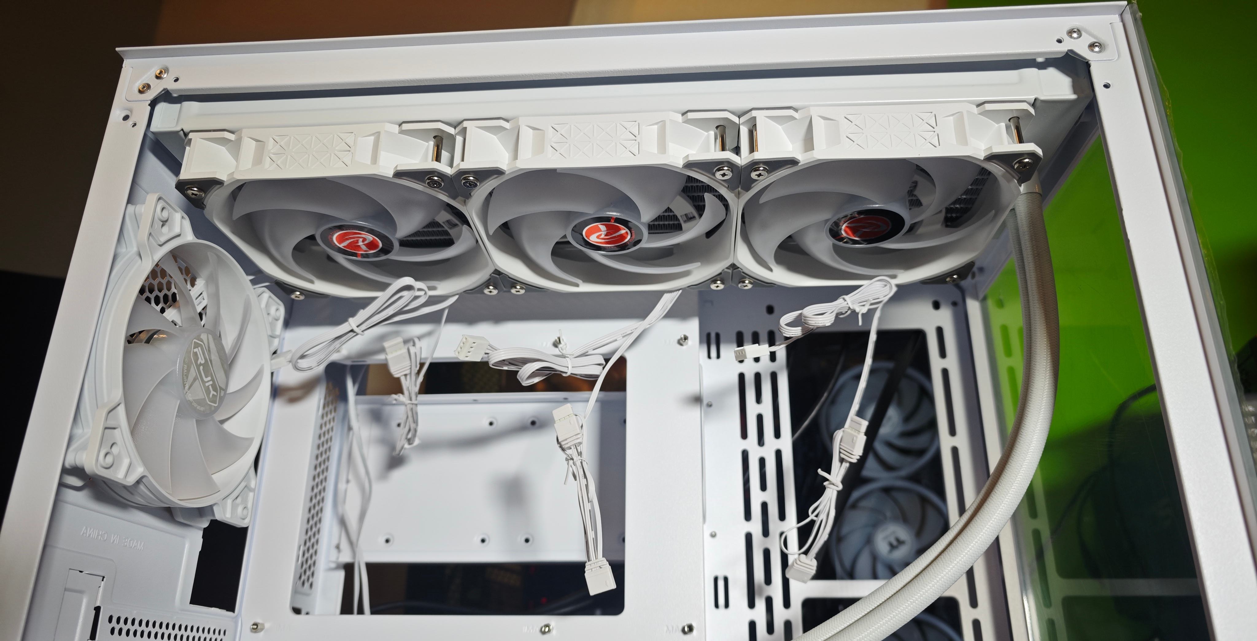Schönes Review. 👍 Unten wäre noch Platz für Lüfter, die direkt auf die (hier nicht vorhandene) Grafikkarte blasen.