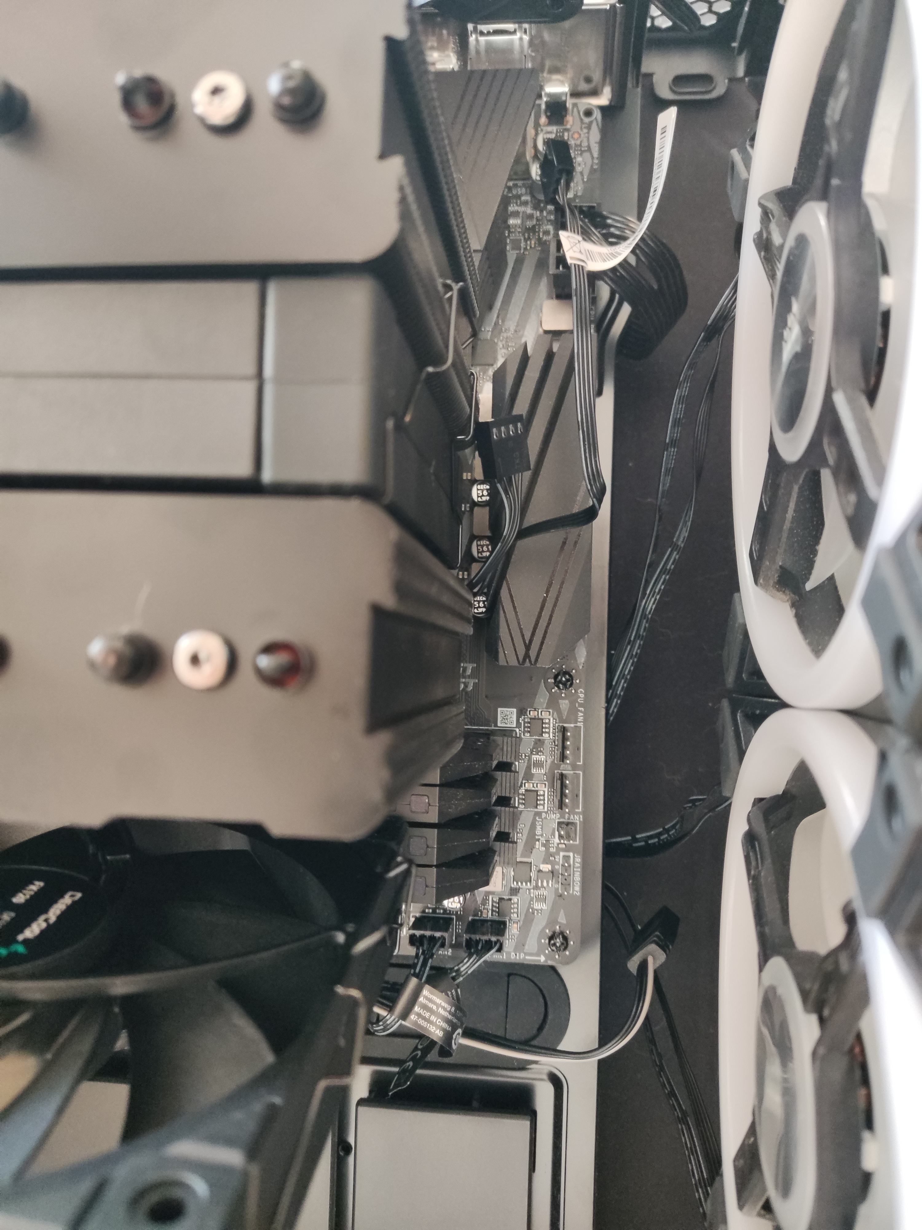 Begonnen habe ich vor dem Einbau erstmal damit, alle Stecker und Verbindungen meiner Wasserkühlung vom Mainboard zu lösen. Meine AiO sitz bis dato in der Front, da das Gehäuse oben nur 240/360 aufnimmt. Daher war mein Plan, nur die AiO auszubauen und ohne viel „tammtamm“ den AK620 auf die CPU zu setzen.