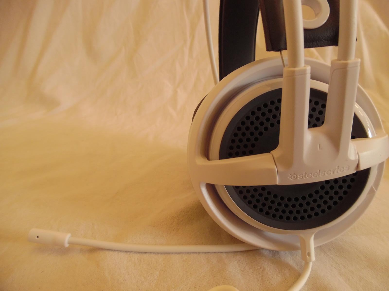 Das Headset besitzt ein schlichtes aber gefälliges Design. Bei dem von mir gewählten Modell ist der Großteil in weiß gehalten und lediglich das Kofband, die Polster der Hörmuscheln und die hintere Abdeckung sind als Akzente in einem Anthrazitton gehalten. Auf riesige Herstellerlogos wird im direkten Sichtbereich verzichtet und nur an den Verbindungsstellen zwischen Kopfbügel und Hömuschel ist Steelseries Schritzzug inkl. kleinem Logo eingeprägt. Ich habe absichtlich Sichtbereich gesagt da auf dem Kopfband der gleiche Schriftzug erneut zu finden ist nun allerdings Kontrastreich und deutlich größer aufgedruckt. Diese Diferrenzierung erschien mir nötig, da Steelseries durch diverse Featuers, wie das Einfahrbare Mikrofon sowie den Multiplattformsupport, das Headset auch als Kopfhörerersatz unterwegs zu sehen scheint. Mich persönlich stört dieser Schriftzug keineswegs.