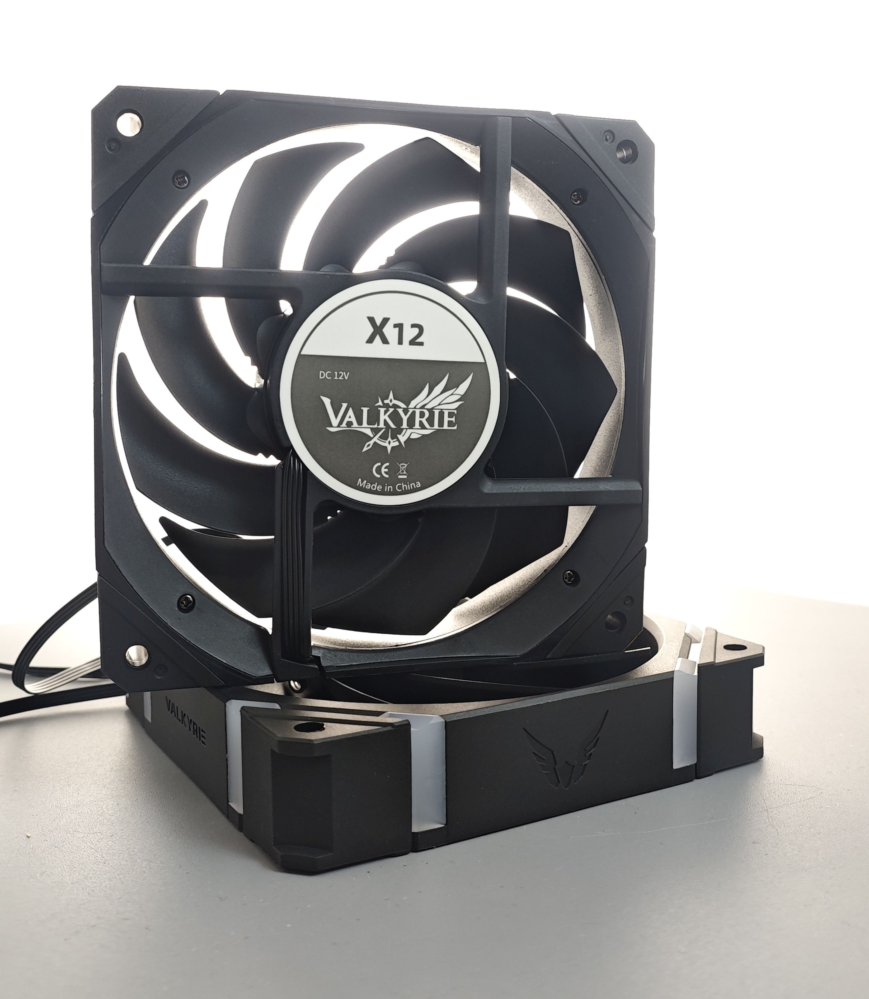 Es werden zwei 120mm Lüfter mitgeliefert, um genau zu sein, 1x Valkyrie X12 ARGB 120 und 1x Valkyrie X12 Reverse ARGB 120.