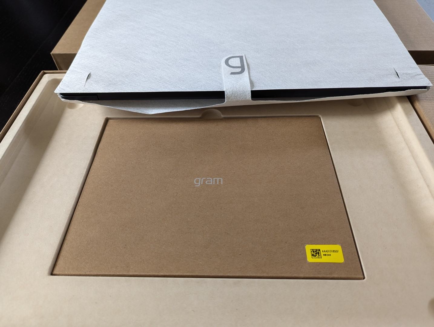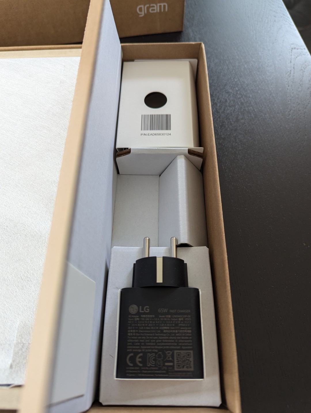 Geliefert wird das LG gram 16 pro in einem schlichten Karton. In diesem Karton befindet sich neben dem eigentlichen Laptop ein 65 Watt Ladegerät samt USB-Kabel und Papierkram zwecks Garantie etc. Das Gerät ist selbst ein einen “Schutzumschlag” eingepackt, welcher an einer Lasche aus dem Karton gehoben werden kann. Das ganze Unboxing hat eine gewisse Apple-Anmutung, welche diese Art von Unboxing-Erfahrung vor Jahren maßgeblich geprägt haben. Der Karton an sich ist stabil und sollte vor normalen Transportbelastungen schützen.​