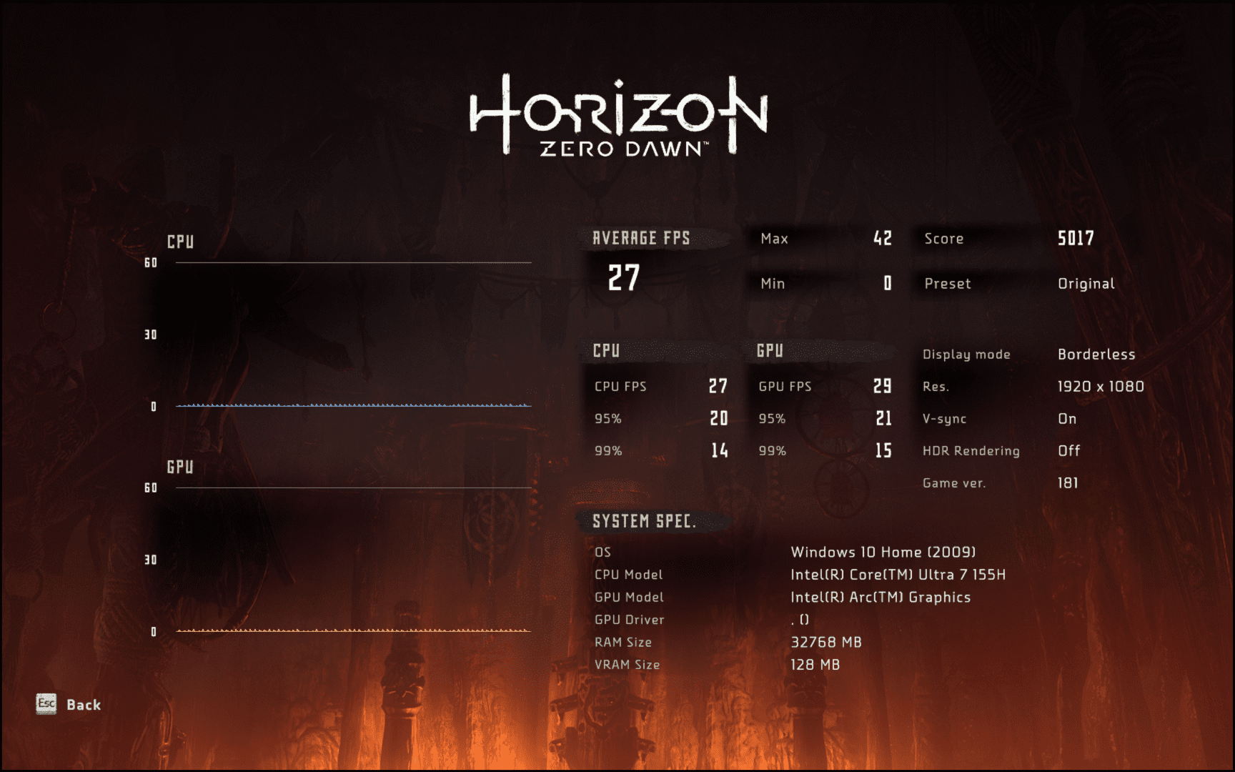 Aufgrund eines mangelnden Verständnisses, was nun „fortschrittliche Grafik“ sein soll, kann hier nur eine subjektive Interpretation angewendet werden. Sind diese FPS-Werte gut, wenn man es im Gaming-Kontext betrachtet? Nein. Sind diese FPS-Werte gut, wenn man eine Onboard Intel Arc graphics in einem 12 Millimeter dickem Laptop hat, welche sich den Memory aus dem RAM bezieht? Ich finde schon. Und hier war ich erst einmal positiv überrascht.​