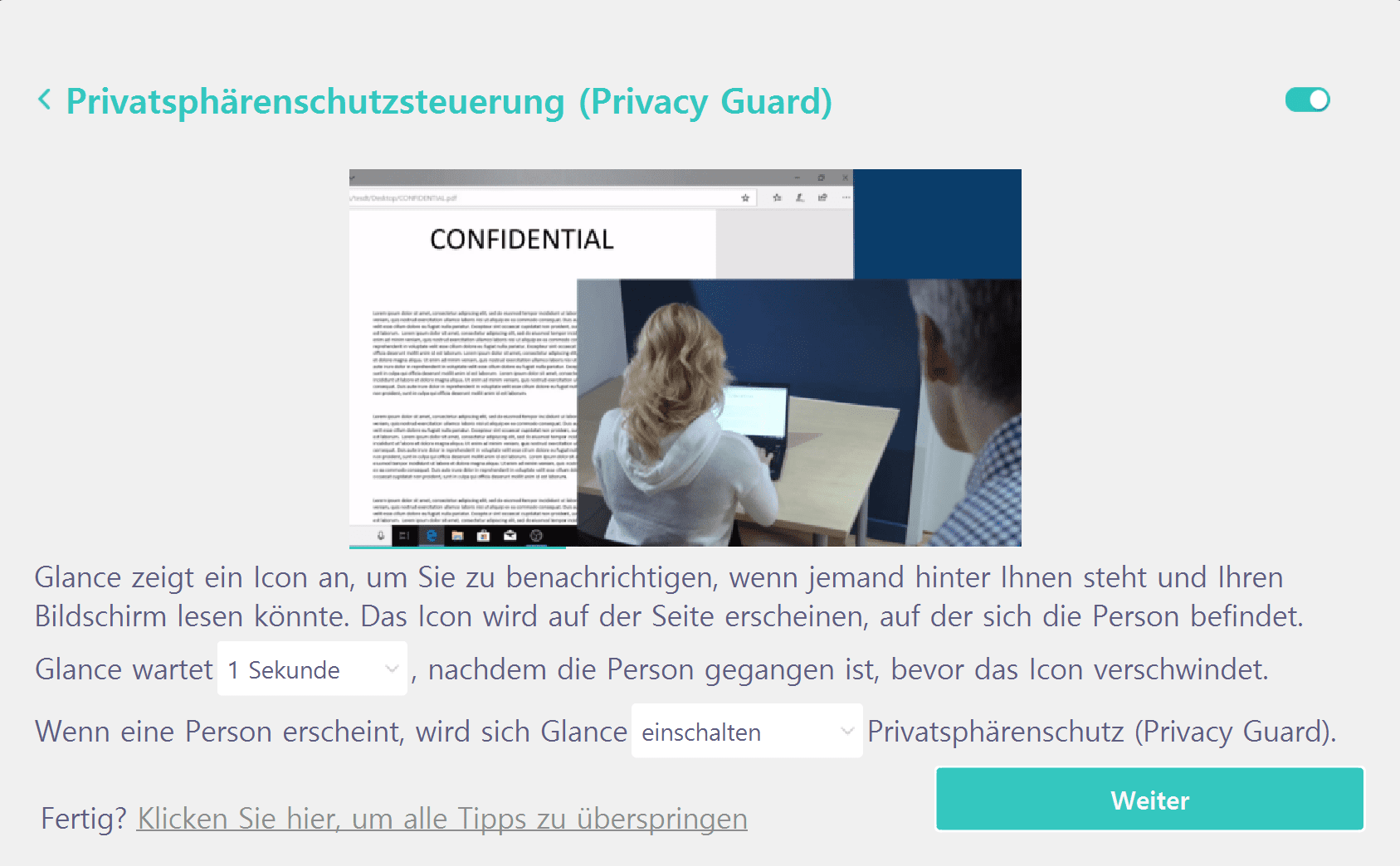 LG Glance regelt einige Features hinsichtlich Zugänglichkeit und Privatsphäre, die für mich uninteressant sind, für Büroumgebungen und mobilitätseingeschränkte Menschen hingegen viel Sinn machen können: