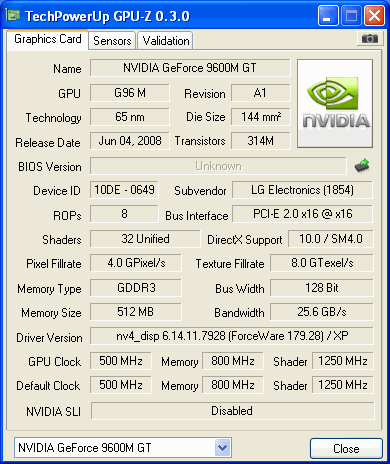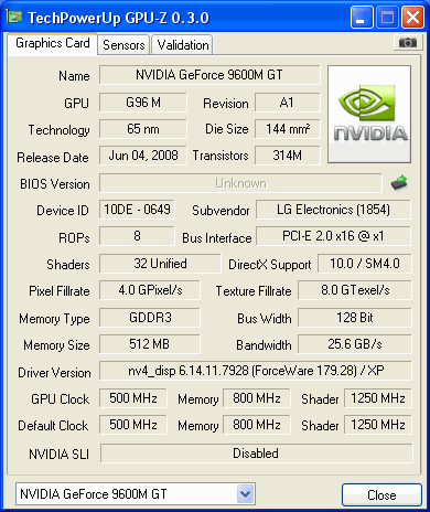 - NVIDIA® GeForce® 9600M GT (GDDR3 512MB + TurboCache)