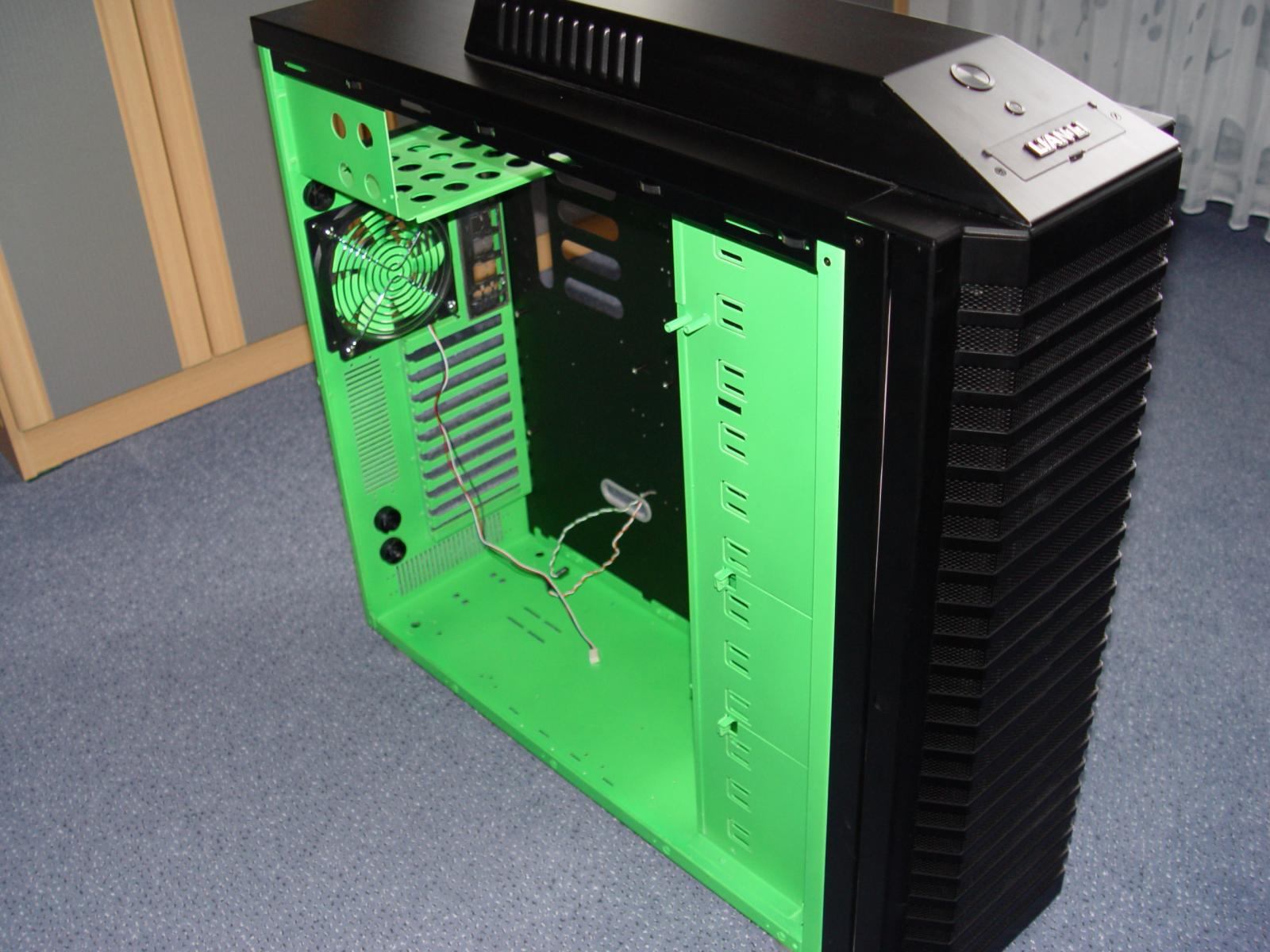 -in den Seitendeckel das Nvidia logo einfräsen und dahinter eine grüne Plexiglasplatte kleben