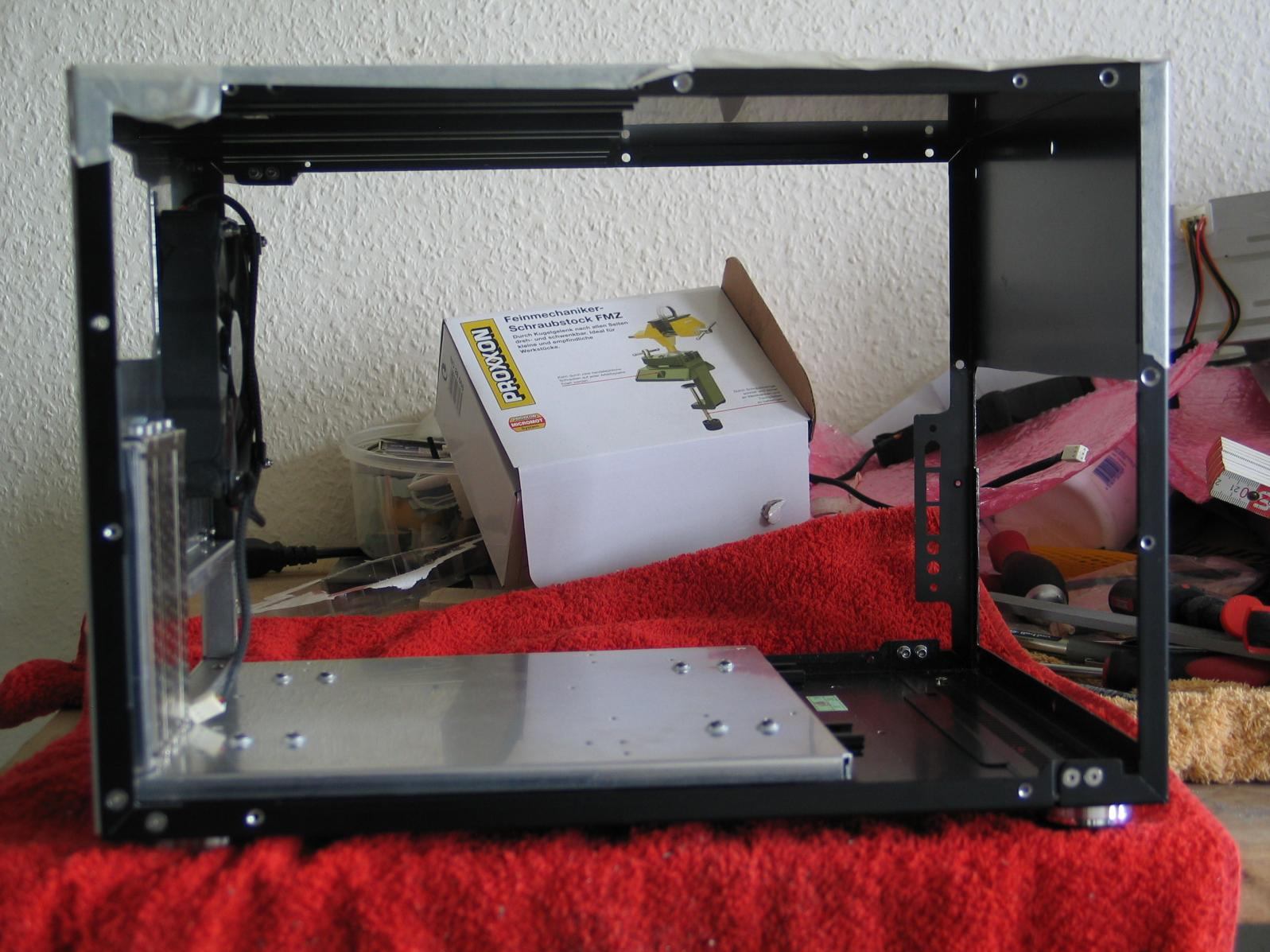 Das mit dem Case läuft so nebenher, wenn der Rechner nicht laufen würde, dann hätte ich schon alles viel schneller in die Gänge gebracht. Aber der liegt frei verdrahtet auf meinem Schreibtisch und läuft, so habe ich alle Zeit der Welt. Ausserdem pfusche ich immer, wenn es schnell gehen muss.