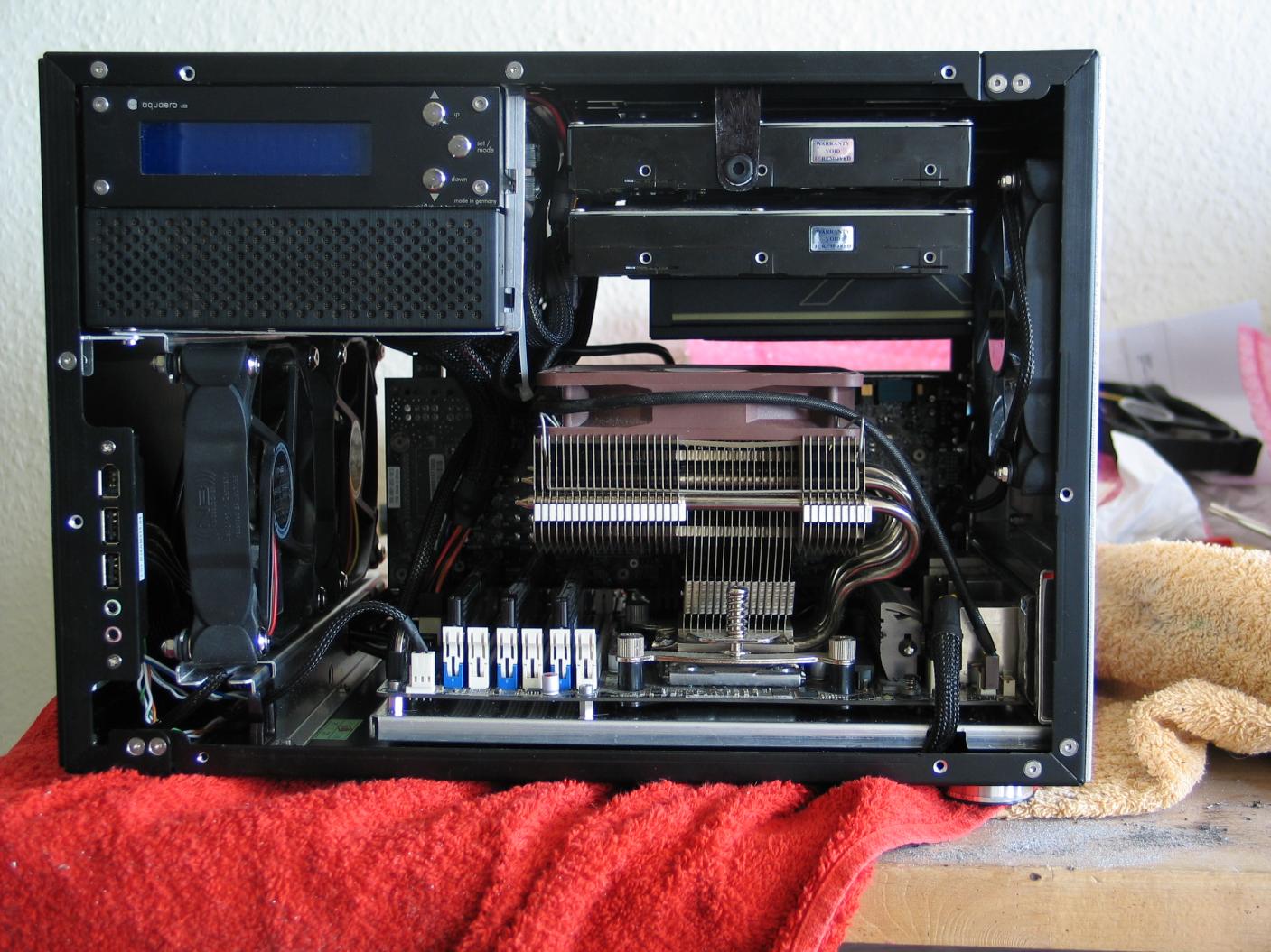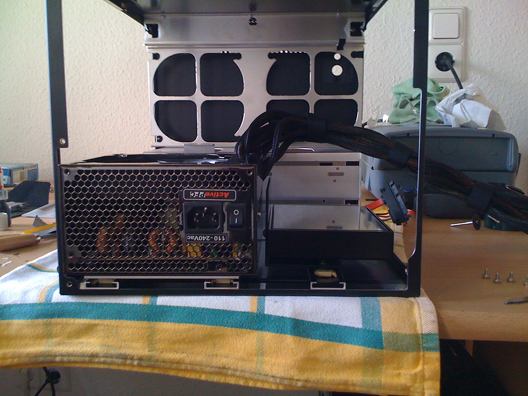 hab mein V351 fertig gemacht, um zu sehen, was passt und was nicht. Sieht insgesammt ganz gut aus...nur brauch ich dringend neue Sata-Kabel, weil meine den falschen Winkelhaben, also zur falschen Seite abgewinkelt sind. Meine Sicherung für die Festplatten ist auch fürn Arsch. Da ist noch nacharbeit notwendig. Das mit den SSD´s über dem DVD-Brenner ist gut. Ansonsten bietet die Mühle richtig viel Platz. Ich Staune nur. Ob ein 120-ziger Radi passt hängt von den verwendeten Sata-Kabeln ab- eng wirds auf jeden Fall.