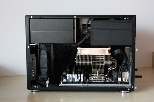 hab mein V351 fertig gemacht, um zu sehen, was passt und was nicht. Sieht insgesammt ganz gut aus...nur brauch ich dringend neue Sata-Kabel, weil meine den falschen Winkelhaben, also zur falschen Seite abgewinkelt sind. Meine Sicherung für die Festplatten ist auch fürn Arsch. Da ist noch nacharbeit notwendig. Das mit den SSD´s über dem DVD-Brenner ist gut. Ansonsten bietet die Mühle richtig viel Platz. Ich Staune nur. Ob ein 120-ziger Radi passt6 hängt von den verwendeten Sata-Labeln ab- eng wirds auf jeden Fall.