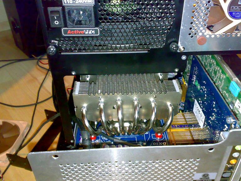 ...Also der Kühler geht ohne Lüfter gerade so unter dem Einschub durch...1-2 mm mehr und es würde nicht mehr passen.