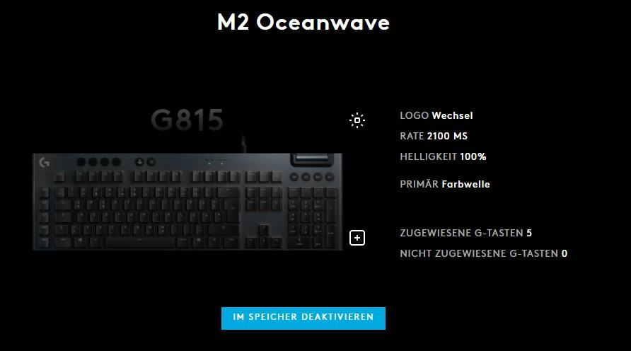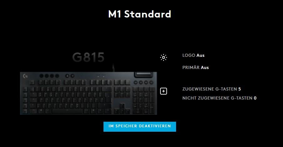 Auf dem G815 gibt es drei Speicherslots und fünf G-Tasten. In M1 und M2 steuern die G-Tasten mit Tastenmakros Licht, Lüfterkurven und Pumpendrehzahlen sowie das OSD in Games. M3 ruft Batchdateien für die Spannungssteuerung der Grafikkarte auf. Ziel ist, alle 3*5 Settings auf der G815 zu speichern, so dass die Software aus bleiben kann. Es gibt derzeit nur ein Profil "Desktop Standard".