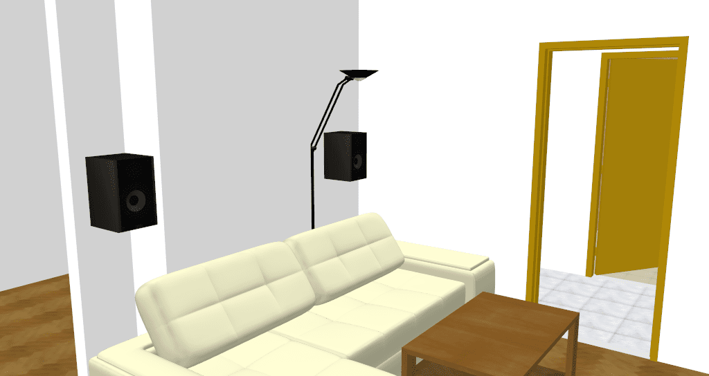 Rear: unbedingt nach innen drehen, sonst verpufft der Ton ohne dass Du auf der Couch was davon hörst und wenn möglich die Couch paar (da reichen 20-30) Zentimeter von der Wand weg.