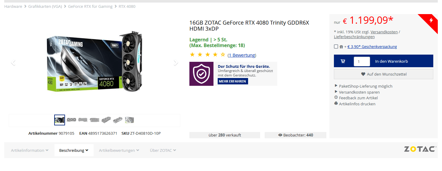 Undervoltet auf 0,875v bei 2580Mhz, nie mehr als 300 Watt in Game gesehen.