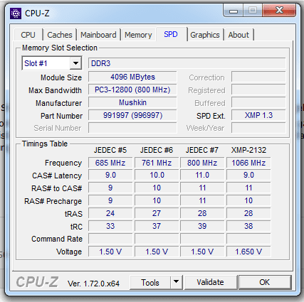 Was die Mushkin Kits angeht, so werden für diese fast alle am Markt verfügbaren IC Typen verwendet. Deshalb lässt sich gerade bei einem DDR3-1600 CL9 Kit nicht sagen, welche ICs tatsächlich verwendet werden. Vermutlich sind es günstige Elpida/Nanya/Micron, die nicht zwangsweise so viel Spielraum bei Takt, Timings, Spannung besitzen müssen. Die Modellnummer sagen bei Mushkin nicht soo viel aus, man kann aber die Einzelmodule ihren Dual und Quad Kits zuordnen: