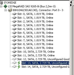 Nach ner halben Stunde hat der Controller die Unconfigured und Hotspares einfach schlafen gelegt. Supa. :banana: