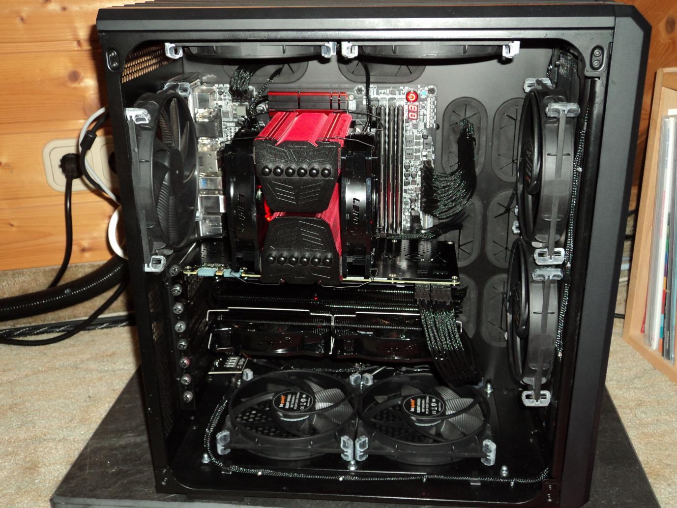 Die Tage kam dann mein Noctua NF-F12 für den Mugen 4 (Lagerschaden am Lüfter), sowie gesleevte Extensions für ein paar auserwählte Kabel. Die Gehäuselüfter vom 200R habe ich durch 2 be quiet Shadow Wings mit 800rpm getauscht.